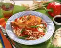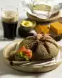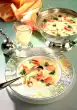 Put in a cool place for about 2 hours. Whip the cream until stiff. Gradually add the sugar. Remove the cake from the edge of the springform pan. Dust the surface evenly with cocoa. Pour the cream into a piping bag with a star-shaped spout and decorate the cake with cream tuffs.