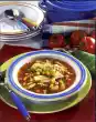 Cut the apricots into thin strips and pour warm water over them. Clean, wash and cut the soup vegetables into pieces. Peel and roughly dice the onion. Bring 1 litre of water to the boil in a pot, stir in the vegetable stock. Wash the chicken breast thoroughly. Add soup vegetables, onion and chicken breast to the boiling broth and simmer covered for about 30 minutes. Wash parsley, dab dry and chop. Remove chicken breast, remove from skin and bone and dice the meat. Heat the fat in a pot, dust with flour and sauté. Add chicken stock and cream while stirring constantly and bring to the boil. Season to taste with salt, pepper, curry, sugar and lemon juice. Drain the apricots. Put some apricot strips aside, add the rest with the chicken breast to the soup and bring to the boil briefly. Serve in soup bowls sprinkled with remaining apricot strips and parsley
