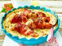 For the dip, mix sour cream, mayonnaise, ketchup and the onion-garlic mixture. Season with salt, pepper, 1 pinch of sugar and paprika