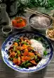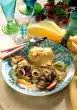 Let it boil well while stirring and season to taste with salt, pepper and nutmeg. Fold in potatoes and vegetables. Heat the remaining fat in a pan and heat the meatballs in it for about 3 minutes on each side. Arrange on plates with the bechamel vegetables. Garnish with tomato and parsley