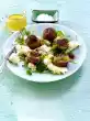 Sprinkle with chives and garnish. Dust the meatballs with curry. Add rice.