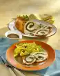 Heat the wraps one after the other in a hot pan for about 20 seconds on each side. Spread the wraps with the pea puree. Cover with tomatoes, lettuce and minced meat, roll up, wrap half in parchment paper and tie together. Add the rest of the pea puree if necessary. Garnish with set aside coriander