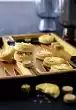 Allow the crêpe to set for only about 30 seconds at medium heat. Switch the cooker to the lowest setting. Cover crêpe with 2 chocolate bars and 2-3 crunchy chocolates. Melt for about 2 minutes at low heat.