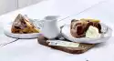 Fold lengthwise, spread with 1 tbsp. apple sauce and then fold in again. Keep warm in the oven (approx. 50 °C). From the remaining ingredients (oil, dough and applesauce) bake 3 more crêpes in the same way.