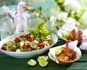 Mix ginger, half of the chilli rings, brown sugar, 2/3 of the lime juice and lime zest well. Embezzle olive oil. Put the prawns in a flat dish, pour the marinade over them and leave to stand for approx. 45 minutes