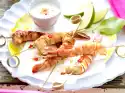 Remove the prawns from the marinade and let them drip off a little. Put the marinade aside. Stick each shrimp lengthwise on a skewer. Grill for 3-5 minutes while turning. Sprinkle the marinade on the prawns, arrange on plates and garnish with lime wedges. Add the dip in a small bowl sprinkled with peanuts