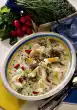 Beat the egg and 3 tablespoons of water in a bowl. Season with salt and pepper. Wash the dill, chop finely and stir into the egg. Spread a coated pan thinly with oil and heat it up.