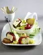 Clean and wash the salad and cut into thin strips. Halve, clean and wash the peppers. Cut the paprika halves into small cubes