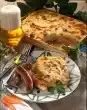 Bake in the preheated oven (electric cooker: 175 °C/ convection oven: 150 °C/ gas: level 2) for 35-40 minutes. In the meantime, peel onions and cut into rings. Heat oil in a pan and fry onion rings in it.