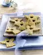 Knead the flour, sugar, vanillin sugar, butter and egg yolk into a smooth short pastry. Cover and chill for about 30 minutes. Roll out the dough thinly (approx. 3 mm) on a work surface dusted with flour. Cut out 25 circles (5 cm Ø), but knead and roll out the remaining dough. Cut out another circle (2 cm Ø) from the middle of the circles.