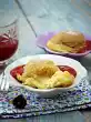 Bring milk, 1/8 litre water, salt and butter to the boil in a saucepan. Add the flour at once and stir with a mixing spoon until the dough separates as a lump from the bottom of the pot (burn off). Put the dough into a mixing bowl and stir in the eggs one by one with the whisk of the hand mixer. Pour the choux pastry into a piping bag with a central star-shaped spout and spray 20 small (relatively flat) profiteroles onto a baking tray lined with baking paper. Fill an ovenproof dish with water and place on the bottom of the oven. Bake in the preheated oven (electric range: 200 °C/ convection oven: 175 °C/ gas: level 3) for 20-25 minutes. Take the finished cream puffs out of the oven and let them cool down.