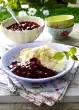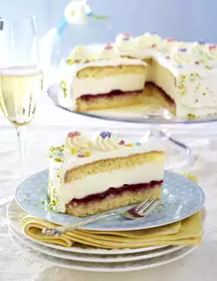 Stir in between. Whip 400 g cream until stiff. Fold half the cream into the Prosecco mixture. Chill again for about 5 minutes, then fold in the remaining cream. Spread on the jam.