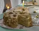 Cover the cake and leave it to cool overnight. Roast the almonds in a pan without fat until golden brown, take them out and let them cool down. Whip 350 g cream and 1 packet of vanilla sugar until stiff. Pour approx. 1/3 of the cream into a piping bag with a large star-shaped spout. Remove the cake from the cake ring and spread the rest of the cream all around. Sprinkle the cake thickly with almond flakes. Use the piping bag to spray a fir tree made of cream onto the cake and decorate with gold pearls. Keep cool until serving and dust with icing sugar if necessary