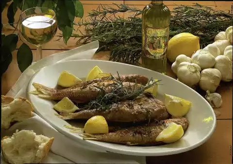 Rinse the thyme, leave a branch behind as well, chop the rest. Mix everything with the lemon oil. Wash the fish, put them in a shallow bowl, pour the marinade over them and leave them in the fridge for about 30 minutes.