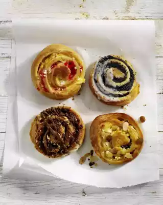 Press the roll into shape if necessary and cut it into 1 1/2-2 cm wide slices/ snails and spread them on 2-3 baking trays lined with baking paper. Brush with liquid fat. Bake the trays with the snails one after the other in a preheated oven (electric cooker: 200 °C/ convection oven: 175 °C/ gas: level 3) for 20-25 minutes. Brush with butter in between. Remove the snails and let them cool down. Sprinkle with sugar crystals