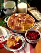 Roll out on a floured work surface (24 x 30 cm). Spread the pudding on top, leaving a 2 cm wide edge free. Spread cherries on top. Roll up from the narrow side and cut into 12 slices. Place on 2 baking trays lined with baking paper. Bake one after the other in a preheated oven (electric cooker: 200 °C/ convection oven: 175 °C/ gas: level 3) for about 20 minutes