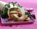 Coarsely chop the pistachios. Mix 150 g sugar, pistachios and 300 g flour in a bowl. Add 200 g butter in flakes and quickly work into crumbles with the whisk of the hand mixer. Put the crumbles in a cool place. Mix 400 g flour, yeast, 50 g sugar, vanillin sugar and salt in a bowl. Melt 60 g butter in a saucepan, add 200 ml cold milk and pour the lukewarm mixture into the bowl to make the flour mixture.