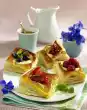 Knead the remaining dough again and cover. Let dough circles rise for another 15-20 minutes with the lid on. Put 2-3 tablespoons of pudding on each circle and sprinkle with crumbles. Bake the 2 trays one after the other in a preheated oven (electric cooker: 200 °C/ convection oven: 175 °C/ gas: level 3) for about 20 minutes. Let the baked particles cool down on a cake rack. Roll out the remaining dough again and cut out. Place the pastry on a baking tray and leave to rise for 15-20 minutes. Spread the pudding and crumble on the pastry and bake