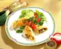 Brush the edges of the whole puff pastry squares with egg white. Place one puff pastry half with the flower cut out on each and press the edges together. Spread with whisked egg yolk and sprinkle with sesame seeds. Put some filling into the circle. Spread egg yolk and cream mixture on the cut flowers and sprinkle with sesame seeds. Bake all pieces in a preheated oven (electric cooker: 200 °C/ gas: level 3) for about 20 minutes. Remove the cut flowers after 12-15 minutes. Arrange the puff pastry particles on a plate, garnished with parsley as desired