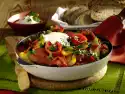 Bake for about 5 minutes and arrange on a plate. Fill with the ragout and garnish as desired with tomato rose and parsley