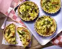 Place puff pastry slices next to each other and defrost at room temperature. Prepare rice in boiling salted water according to package instructions. Drain rice. Peel and finely dice onion. Clean the pointed cabbage, quarter it and remove the stalk. Cut cabbage into small pieces.