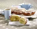 Let the puff pastry sheets thaw at room temperature for about 15 minutes. Then cut into 4 strips (each strip approx. 12x5.5 cm). Put 50 g sugar in a deep plate, press one side of the puff pastry strips lightly into the sugar. Place the unsweetened side on a baking tray lined with baking paper and bake in a preheated oven (electric cooker: 200 °C/ convection oven: 175 °C/ gas: level 3) for approx. 20 minutes. Remove from the oven, place on a rack and allow to cool. Then cut open with a sharp knife.