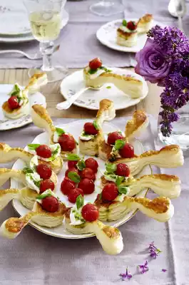 Separate puff pastry sheets and allow to thaw at room temperature. Cut out 2 spoons from each of the plates, preferably using a teaspoon as a template and cut generously. Fold the rest of the dough, do not knead, wrap in foil, chill and use the dough for other purposes.