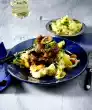 Mix sour cream, crème fraîche and vinegar. Season to taste with salt, pepper and sugar. Mix everything evenly into the cabbage. Leave to stand in a cool place for about 1 hour. Remove meat from the oven.