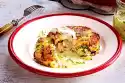 Halve the chorizo slices and place between two layers of baking paper. Heat up a pan (or grill pan). Place chorizo with paper inside, weigh down with a pot and fry the sausage until crispy. Take it out. Fry the potatoes and spring onions in hot frying fat and take them out.