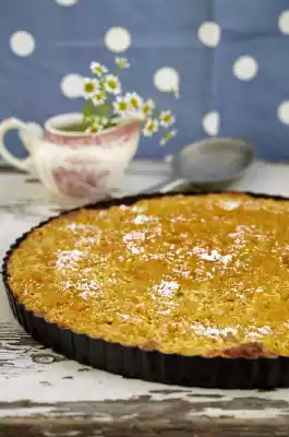 For the short pastry, knead 175 g flour, sugar, vanilla sugar, 1 pinch of salt, orange peel, egg and 60 g cold butter in pieces with the dough hooks of the hand mixer to form coarse crumbs. Put crumbs into a greased tart tin and press them to a base, also pulling them up at the edges. Cover and chill for approx. 1 hour