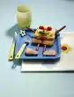 Cut pumpkin into slices and remove seeds. Peel pumpkin and dice flesh. Peel, wash and chop the potatoes. Peel and chop onion. Fry pumpkin, potatoes and onion in hot clarified butter.