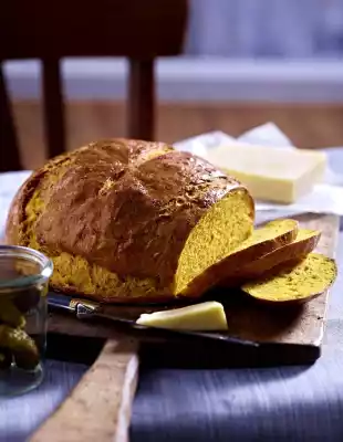 Mix flour, 1 1/2 teaspoon salt, fennel and yeast in a bowl. Add cold pumpkin puree and 150 ml water and knead to a smooth dough. Cover and leave to rise in a warm place for about 1 hour