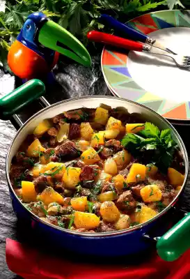After 20 minutes stewing time add to goulash. Whisk the flour in a little water, stir into the goulash and boil through again. Season to taste with salt, pepper and honey. Wash parsley, chop finely and sprinkle over it.