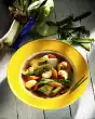 Peel and finely chop the onion. Peel, wash and slice the carrots. Drain pumpkin. Heat the fat. Steam onion and carrots for about 5 minutes.