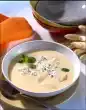 Whip cream until semi-solid. Rinse shrimps cold and dab dry. Wash the dill, dab dry and chop. Divide the soup between four soup plates. Spread a dollop of cream, two prawns and dill on each plate.