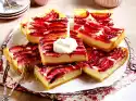 Grease a round casserole dish (24 cm Ø) approx. 3 cm high). Cut 3 strips, approx. 4 cm wide, approx. 30 cm long from a baking paper roll. Place the strips in the casserole dish in a crosswise offset pattern. Roll out the dough into a circle (approx. 31 cm Ø) on a floured work surface. Carefully place the dough into the prepared casserole dish, leaving a rim of approx. 1 cm all around. Chill for approx. 1 hour