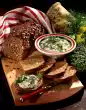 Pour the apricot puree into a small bowl and sprinkle with the apricot pieces. Cut the bread into slices. Put 1 teaspoon each of sour cream and apricot puree on a slice of bread and garnish with mint.