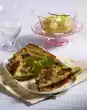 Cut the vanilla pod lengthwise and scrape out the pulp. Mix wine, lemon juice, egg yolks, sugar and vanilla pulp. Whip to a thick cream on a hot water bath. Stir in the quark. Spread on the fruit and gratinate under the hot grill of the oven for 3-4 minutes until golden brown. Remove, sprinkle with almond flakes and decorate with currants