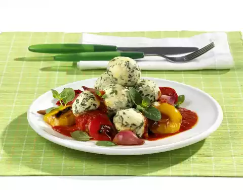 Remove with a skimmer and allow to drain. Arrange hot curd cheese dumplings with paprika sauce. Garnish with oregano.