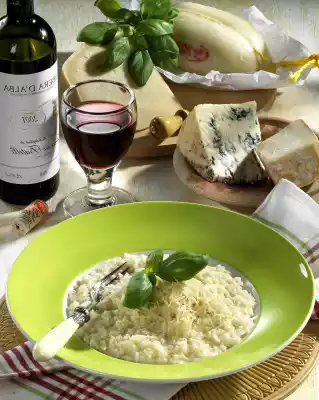 Stir from time to time and add the rest of the stock little by little. Cut cheese into small cubes. Fold the cheese cubes, half of the Parmesan cheese and 25 grams of butter into the rice. Serve immediately sprinkled with pepper and parmesan.