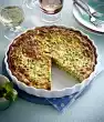 Wash the thyme, shake dry and chop half of the leaves finely. Whisk sour cream, eggs and cream and season with nutmeg, salt and pepper. Add chopped thyme. Grease a tart dish (approx. 24 cm Ø) with lift-off base and sprinkle with breadcrumbs.