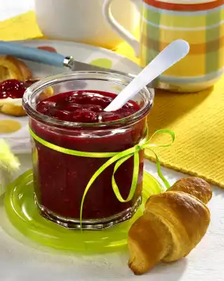 Raspberries selected. Set 50 g aside. Puree 200 g raspberries, sugar and vanilla pulp with the blender for about 45 seconds. Fold in the rest of the raspberries and pour into a glass with screw cap. Store in the refrigerator. Consume within 14 days