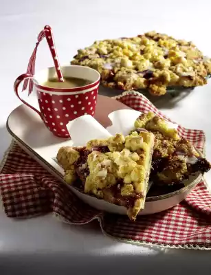 Place 2 circles on 1 baking tray and spread with jam. Sprinkle the crumbles on top, rubbing or tearing them between your fingers. Bake in the preheated oven (electric cooker: 200 °C/ convection oven: 175 °C/gas: level 3) one after the other for about 20 minutes. Let them cool down