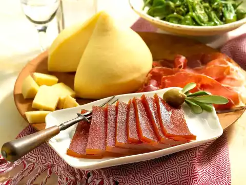 Either leave to dry for a few days in a dry, warm place or in the oven (electric cooker: 75°C/ circulating air: 50°C/ gas: level 1) for four hours. Cut quince bread into slices and store in tin cans or porcelain containers (keeps for several months). Serve with quince bread Tetilla cheese, Serrano ham and pimentos