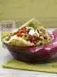 Peel and finely chop the garlic. Clean the chillies, halve lengthwise, remove seeds, wash and chop finely. Peel onion and cut into thin strips. Peel and wash the potatoes and cut into small cubes of approx. 1⁄2 cm.