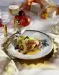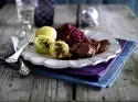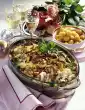Drain potatoes and celery and mash finely. Stir in milk. Season to taste with salt and nutmeg. Mix the prepared salad ingredients. Serve everything