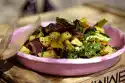 Brush the potatoes thoroughly under running water. Cut the potatoes in half and hollow them out to a small edge with a ball cutter (the potato pieces that are released can be used for a soup, for example).
