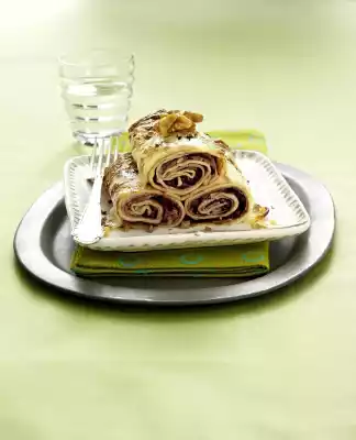 Cover each pancake with 1 slice of ham and radicchio, then roll up tightly. Place the crespelle in a greased casserole dish (approx. 15 x 20 cm). Wash lemon hot, grate dry and thinly grate half of the peel.