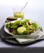 Put rice into 300 ml boiling salted water, cover and let it swell for about 20 minutes at low heat. In the meantime remove the wilted leaves from the radicchio and cut out the stalk in a wedge shape. Carefully remove 12 large outer leaves, wash and drain. Quarter the remaining radicchio, wash and pat dry. Cut the radicchio quarters into fine strips. Wash romaine lettuce leaves and cut into fine strips as well.