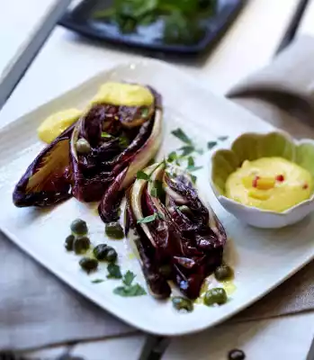 Heat 2 tablespoons of oil in a frying pan. First fry the radicchio on the slices for 1-2 minutes at high heat. Then turn. Add capers, butter and honey and fry briefly. Season with salt and pepper.